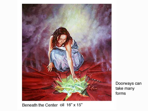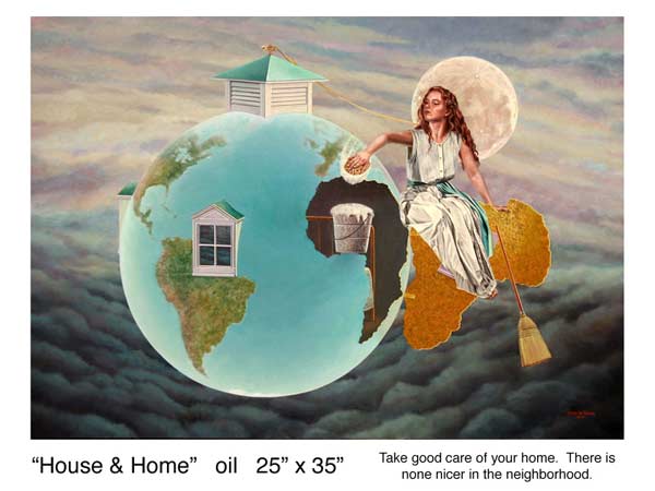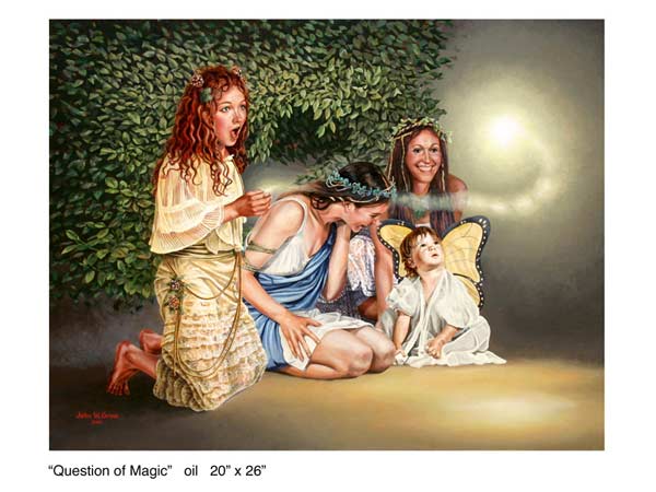 ”Through whimsy and impeccable skill, Grow lures us into a world of both personal and the universal possibilities. His painting hints at life’s nagging mysteries and the option that there may be bigger forces at play. He writes, “The angels/faeries are the messengers who accomplish the mysterious transitions from potential to “real”. They are the leading edge of becoming”.