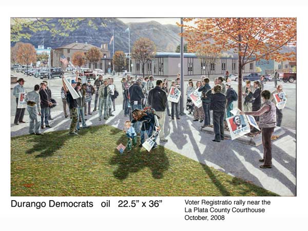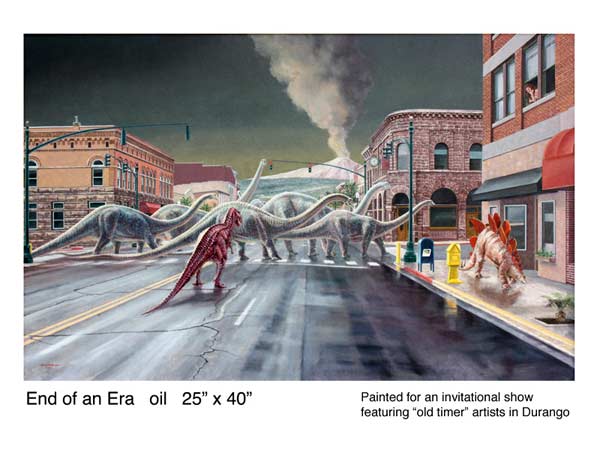 Durango artist John Grow portrays nontraditional subjects with classic realism. The award winning scholar and filmmaker has won eight Best of Show Awards for his symbolic/whimsical paintings of people. Other subjects include archaeological reconstructions, historic Colorado railroads, and contemporary small town life. John Grow studied Art at Northwestern University. His studio has been in the Four Corners region of southwestern Colorado since 1978.