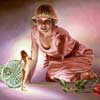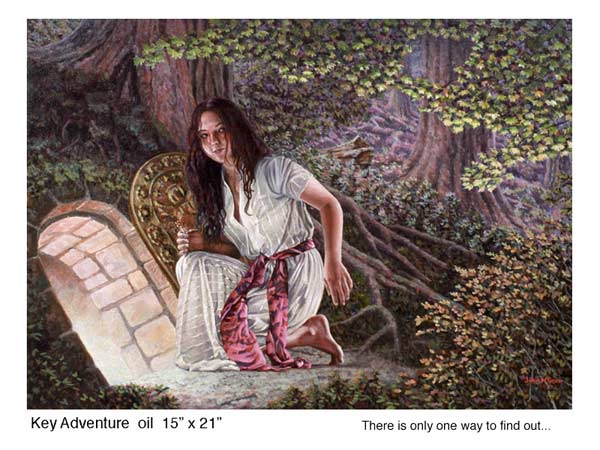 The titles of his work seem personal, but like a word puzzle, they can suggest a path to interpretation. The art is so detailed in places that it evokes awe and wonder: The faces of the young women are fresh and lovely with a hint of some secret knowledge. The symbolic themes tell a story, but their mean ƒing might be obscure, with only a nod and a wink alluding the real subject. ...Yet the most arresting elements of his work - that grabs viewers by the lapels and shakes their platitudes - are his technical facility and the photographic exactitude of his brushwork. His talent is so exquisite that Grow makes the implausible believable.”